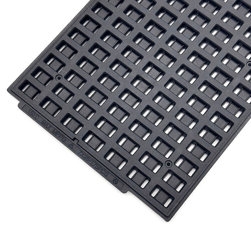 पुनः प्रयोज्य जेडीईसी मैट्रिक्स ट्रे हैंडलिंग और परिवहन के दौरान अर्धचालक उपकरणों की सुरक्षा के लिए एक लागत प्रभावी और विश्वसनीय समाधान प्रदान करता है।इसकी सटीक जेब लेआउट उचित संरेखण सुनिश्चित करता है और स्वचालित या मैनुअल प्रक्रियाओं के दौरान डिवाइस आंदोलन को कम करता है.